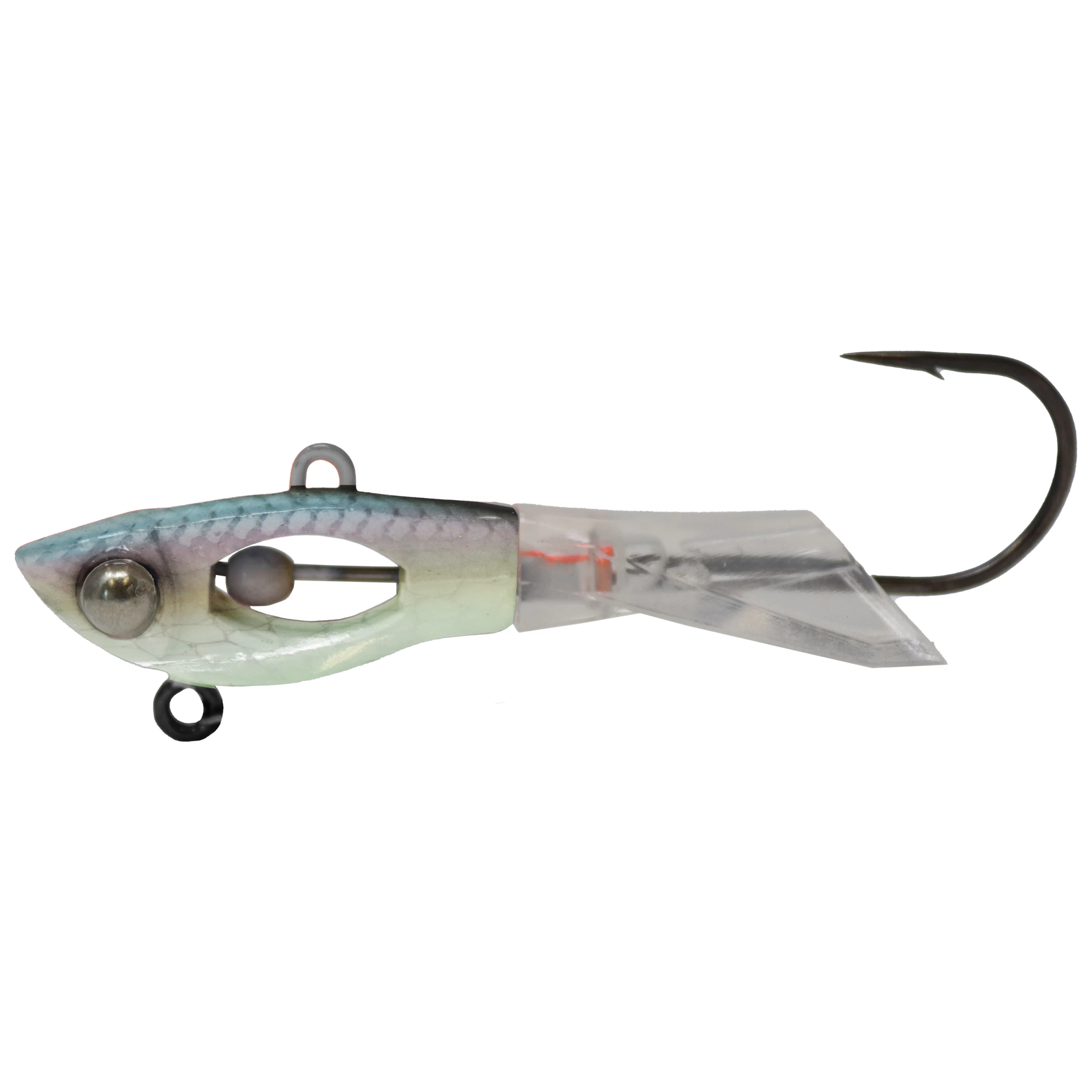 A brand new style of jigging minnow packed with unprecedented features. Rattling google eye glass chamber and through body brass hammer provide ultra sonic vibrations and noise upon the rip. Soft silicone tail is 360 degree tunable and will not rip, tear, or shatter when fishing hard bottoms or taking aggressive strikes from large gamefish.