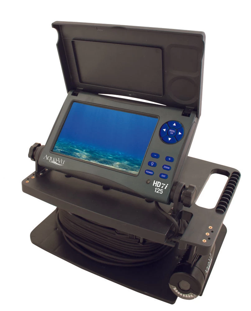 New HD7i 125 Gen2 with full 1080p HD resolution and image-clarifying True-Color technology plus battery power saver mode. Outfitted with Aqua-Vu’s modular XD Camera with Quick Attach, the HD7i 125 High-Definition Underwater Viewing System displays rich, colorful underwater video on a dynamic and spacious 7-inch Daylight Viewable LCD. XD Camera includes 125-feet of durable cable with high intensity, adjustable IR Lighting, and is compatible with all Aqua-Vu XD accessories (sold separately).