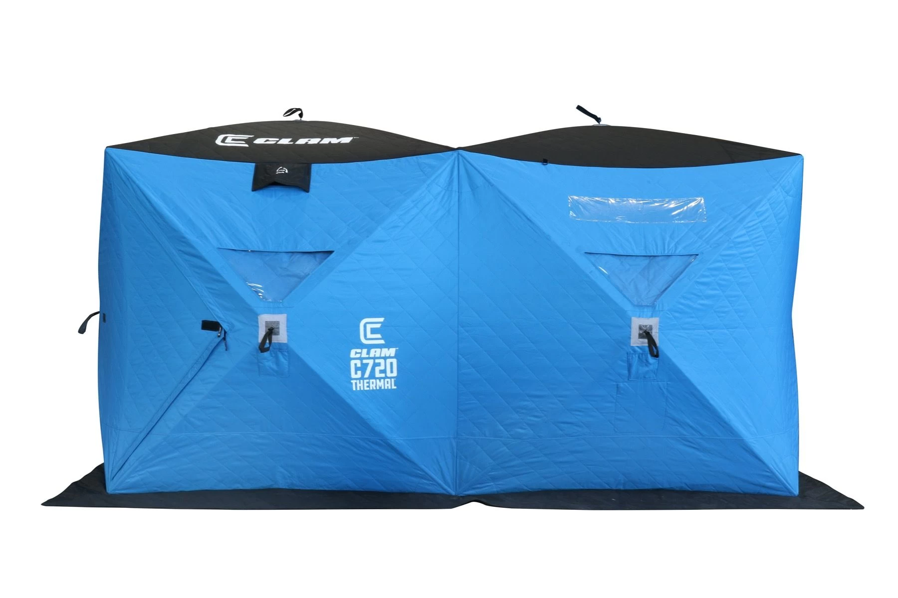 We had multiple requests for a double hub shelter in the C-Series hub shelter lineup so here it is, the C-720 Thermal Hub Shelter! This shelter packs down small but fishes big with 72 total square feet of fishing area. This shelter is perfect for a group of friends or the entire family, and it sets up in about 60 seconds.