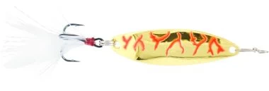 The Leech Flutter Spoon from Clam Pro Tackle has the ultimate unique flutter that falls and tumbles back-and-forth. The highly reflective plated color finishes flicker light like fish scales. One thing for sure is our waters have cleaned up because of environmental awareness and also invasive species like zebra mussels, fossil snails, rusty crawfish, gobies and more. Water clarity is often 10 – 30 feet. No need for glow during the day, might scare em. Lure em in with the metal flash and flicker like an injured baitfish. The Leech Flutter Spoon falls slowly because of it’s lightweight and environmentally friendly zinc alloy material. The attracting feathered treble fools ’em every time. Now in high-vis Glow and UV colors that shine brightly to lure fish in. Simply charge with our blue light Jig Charger and watch’em glow.