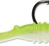 Brainchild of CLAM pro James Vladyka, the Jamei is a bug and shrimp imitator. “Thread the hook through main body,” he says, “toward the twin tails. Make sure it’s on there straight. Slide it all the way on, so it fishes horizontally, or put it on the hook only far enough that the twin tails face upward. This gives amazing action.” As with many plastics, a dab of super glue holds it in place and lets you fish harder with less time spent adjusting things
