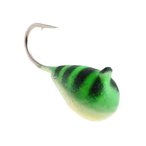 This is the centerpiece of our tungsten series, equipped with 5 sizes and 6 colors. Some tiny, some big enough to bulk up with multiple maggots, waxies or buggy plastics. Take on anything, to monster crappies, bull bluegill, jumbo perch, even bass, walleyes and pike. Bulbous front, tapered back. Typically hangs at about a 45-degree angle, with a pivoting hook that finds the top of fish mouths on the hookset. Made From Tungsten, 30% Heavier Than Lead.