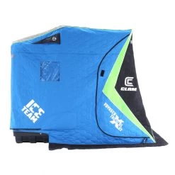 For anglers looking for the best two-person portable shelter, look no further than the Voyager XT Thermal. The Voyager is packed with features like a full thermal skin, 1 1/4″ poles, deluxe seats, side doors with easy setup and entry. This shelter fishes big for two anglers and has enough space for each angler to each have two holes and space for their gear.