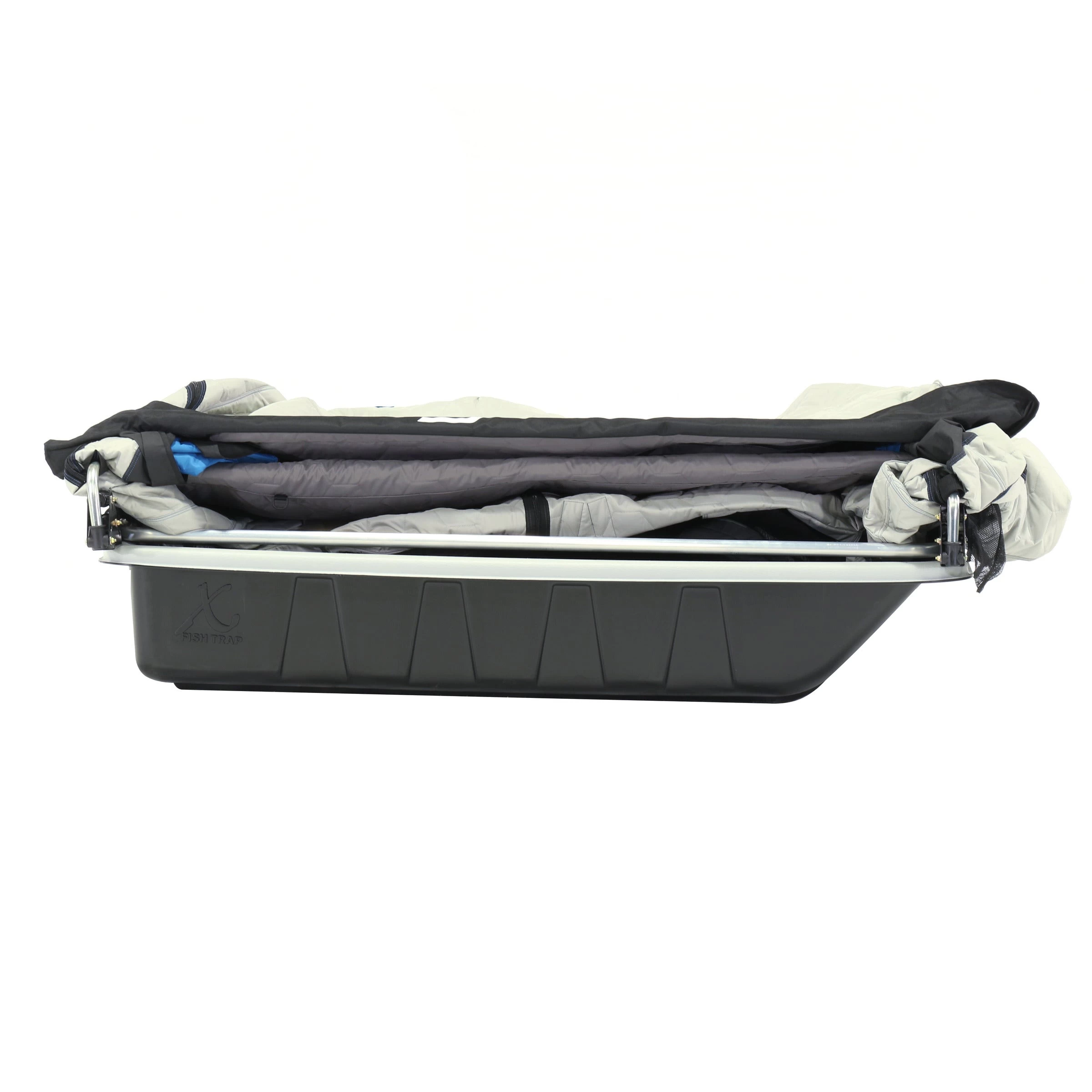 The X-400 Thermal is the 5-star trap shelter for families and groups. Super durable and comfortable for four anglers and even the dog! This spacious double-sided trap-style shelter is perfect for the days that you want to share the bite with friend and family.Â