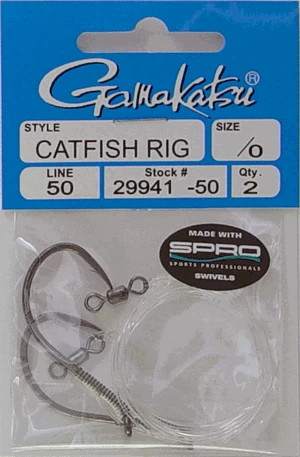 Gamakatsu’s Catfish Circle Rig features a super sharp Gamakatsu Circle Hook tied on a 28″, 50 lb. test premium monofilament leader that’s finished with a SPRO Power Swivel at the end of the leader.