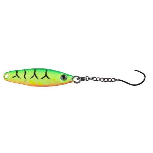 Snare spoon is designed to quickly and efficiently target schooling fish. The compact body is equipped with a dropper chain affixed with a single hook ideal for tipping and attracting neutral fish. Realistic fish patterns with 3D eyes, gill plate, and scale texture. Compact body ideal for getting deep quickly and efficiently targeting schooling fish. Sold with a single hooked dropper chain ideal for finesse fishing on finicky fish.