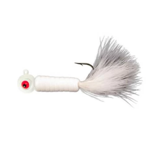 Fuzz-E-Grubs are very effective when fished plain, or tip them with a minnow, crawler, leech, or other favorite live bait. Seven Fuzz-E-Grub sizes, from 1/16 oz to 3/8 oz, provide versatile jigging magic for the full spectrum of game fish, from crappies to pike. Bass and walleyes love ’em!