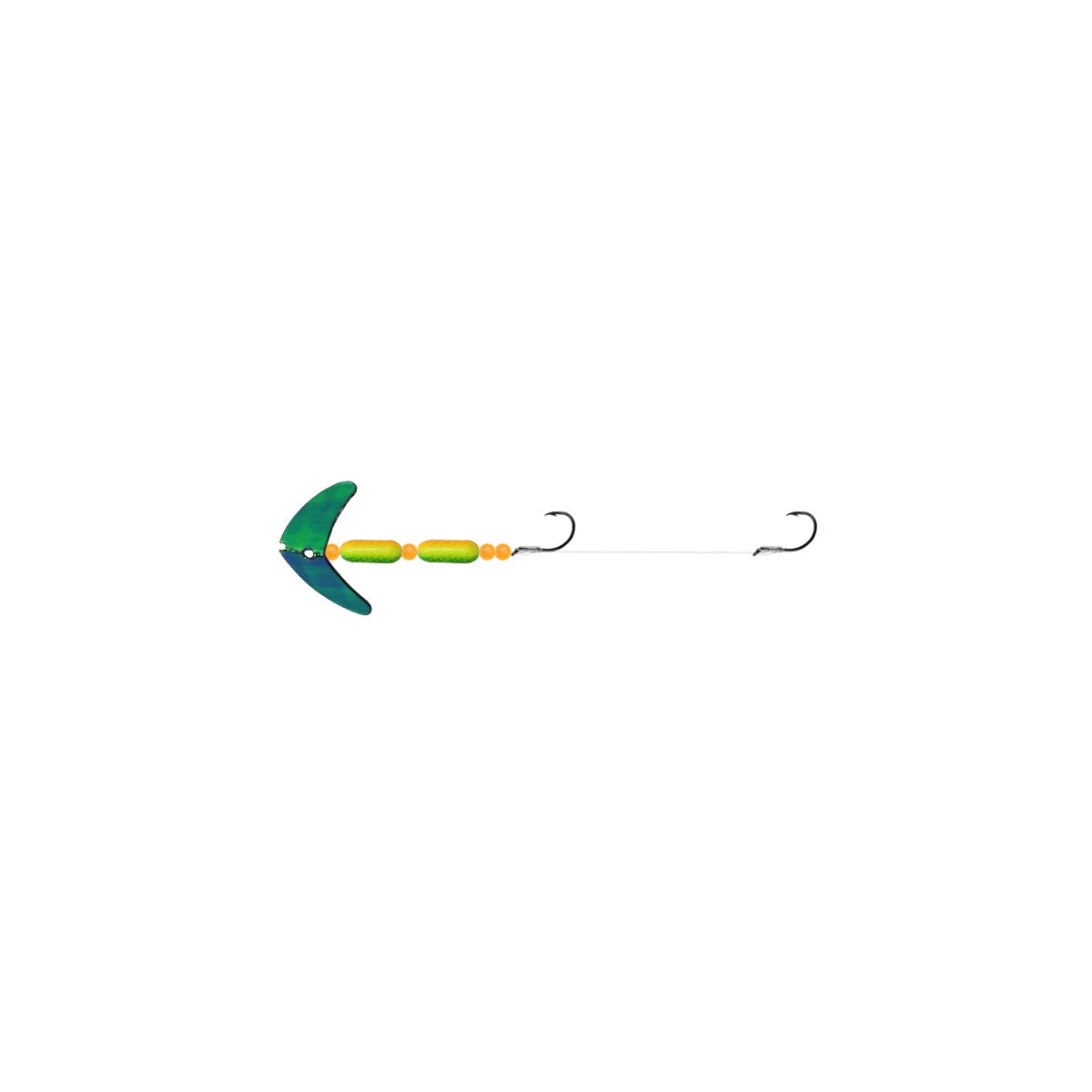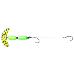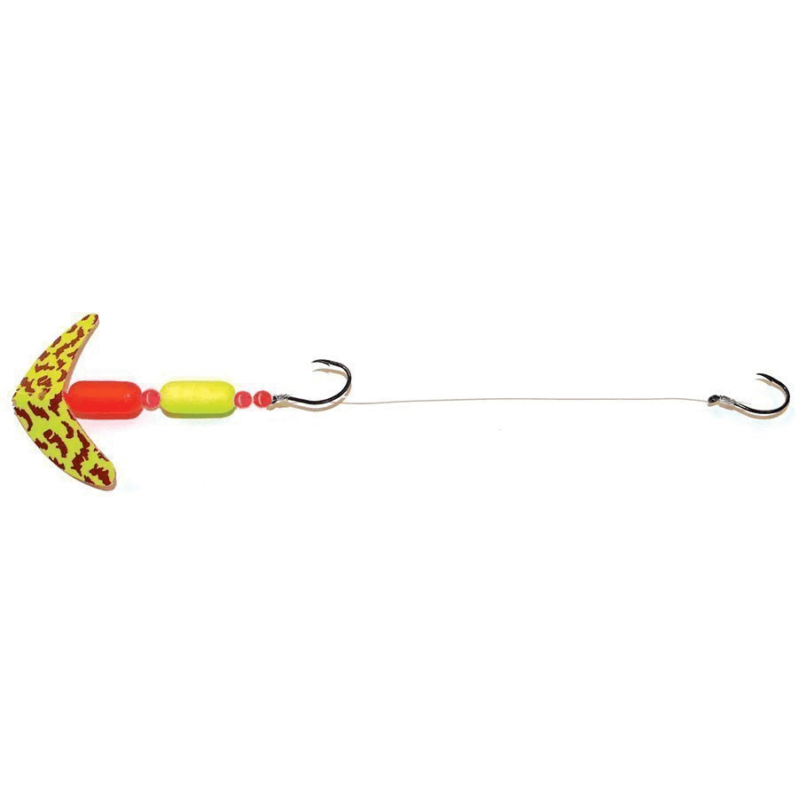 Attach the Cha Cha Floating Crawler Rig by Mack’s Lure on your line and get ready for the dance. Two-hook floating harness is equipped with a Smile Blade® that turns at speeds less than 1/4 mph, shaking and wiggling suspended bait in the strike zone. Turn up the speed and it generates a high-activity action. 72″ 14-lb.-test leader withstands hard-hitting fish. 2-1/2″ spacing between the No. 4 hooks prevents short bites.