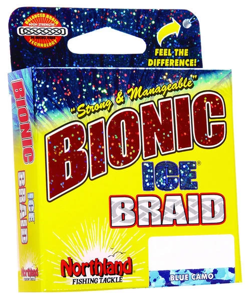 Fish the braid that’s made for ice fishing. Northland® Bionic Ice® Braid is thin, tough, round, and flexible – exactly what’s needed for stealthy coldwater presentations to overgrown predators. Its advanced 4-Carrier Balanced Braidâ„¢ Technology blends micro-strands of polyethylene fiber, and is coated with a low-friction, freeze-resistant skin to maintain its manageability both in and out of the water. High strength-to-diameter ratio; no-stretch for extreme sensitivity.