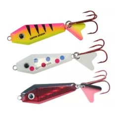 The Northland Tackle Buck-Shot Coffin Spoon is new for the 2021 ice fishing season. No matter the water conditions or targeted species, you’ll find the right Buck-Shot Coffin Spoon for the perfect presentation. With the internal brass rattle and Kicker-Tail fin, the Buck-Shot Coffin Spoon is the loudest spoon Northland Tackle offers. Plus, the angled body uniquely reflects light, while the flat-sided profile produces a tumbling action. With these two features, the Buck-Shot Coffin Spoon will attract fish and make your presentation irresistible. Be ready for the upcoming ice fishing season with the Northland Tackle Buck-Shot Coffin Spoon.