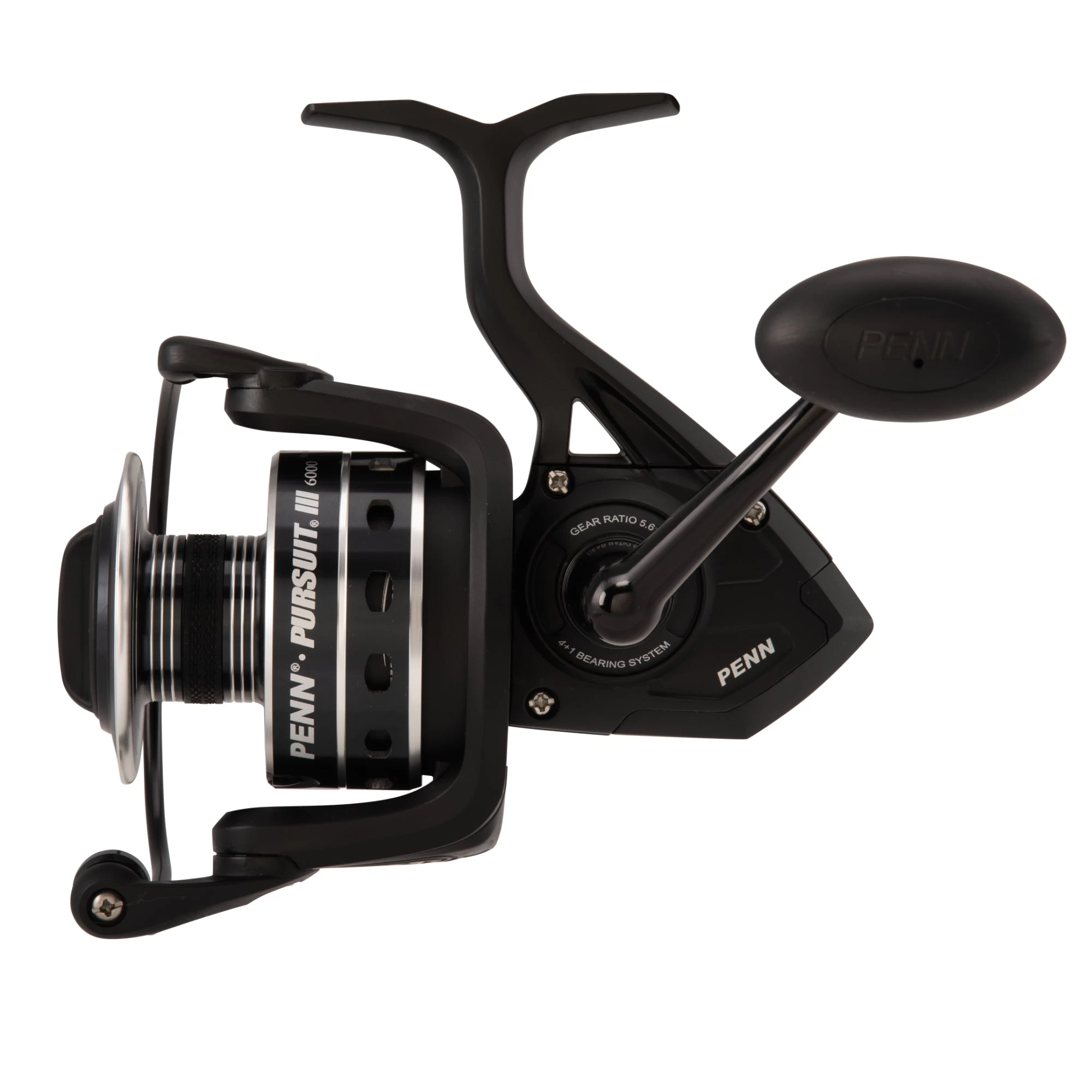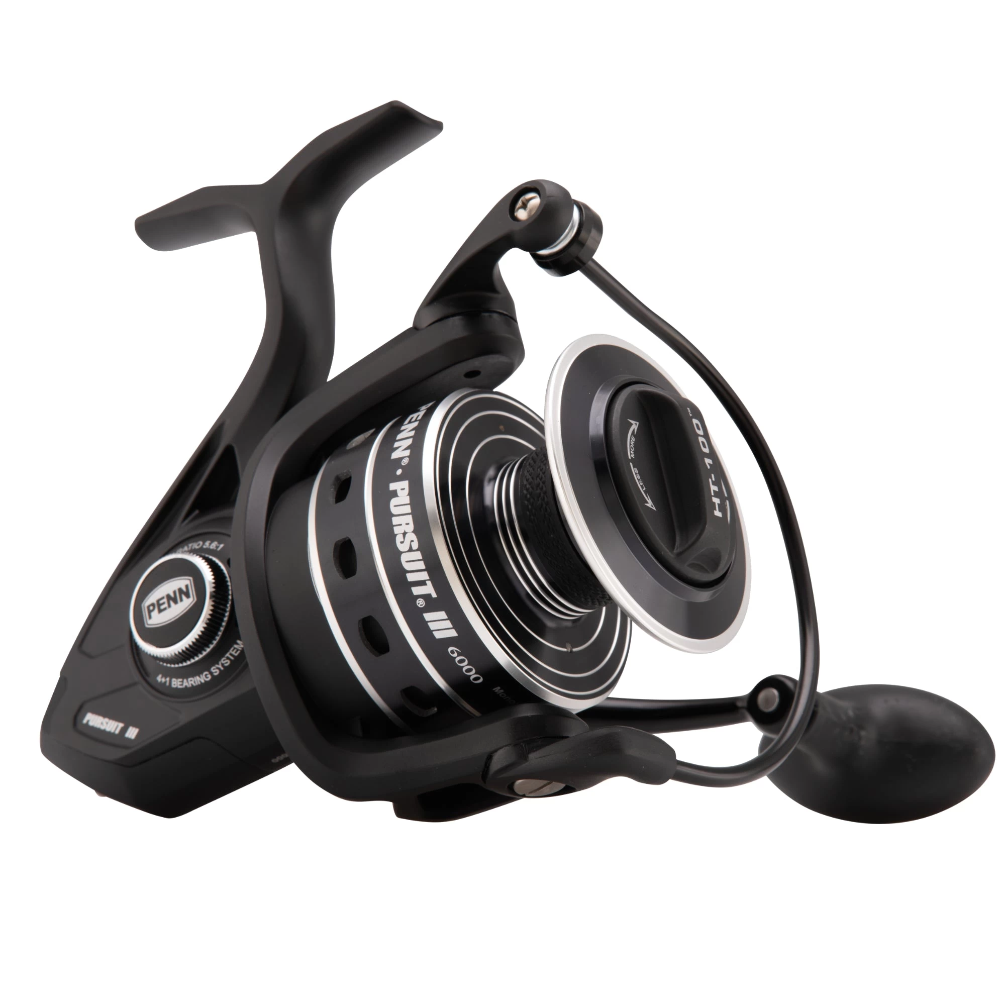 The PENN Pursuit III features a durable constructionĀ and the smooth gear system anglers expect from PENN.Ā This reel features an ultra lightweight,Ā corrosion-resistant graphite body and powerful HT-100Ā drag system making the Pursuit III a great value forĀ the money for saltwater anglers. Available in sixĀ sizes from 2500 to 8000, the Pursuit III has a reelĀ for most fisheries. The Instant Anti-ReverseĀ eliminates even the slightest rotor back play forĀ instant hook-ups every time, while the 4 shieldedĀ stainless steel ball bearings provide smoothĀ retrieves.