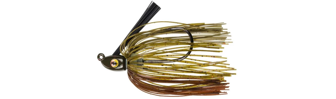 The Strike King Tour Grade Swim Jig is a standard swim jig built with quality components to ensure it is tournament ready. Designed to catch more fish, it employs a streamlined, balanced head for an enhanced swimming action. The head also features life-like eyes and a variety of colors that match up perfectly with the Strike King Perfect Skirts included with each jig. Jig is built around a medium wire ultra sharp hook. Try a Rage Craw, Rage Menace, or Rage Swimmer as a trailer and hold on, bass love them all. Available in 10 colors and 3 weight options: 1/4 ounce, 5/16 ounce, and 3/8 ounce.